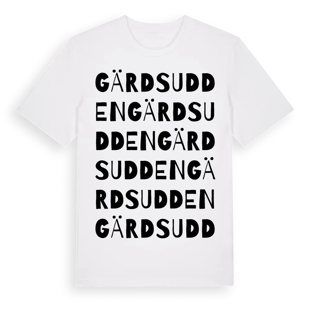 Gärdsudden ordlek t-shirt är inspirerad av Gärdsudden i Östergötlands län, Sverige. Tröjan är designad för dig som har en speciell koppling till platsen – oavsett om du bor här, har rötterna här eller bara älskar Gärdsudden.