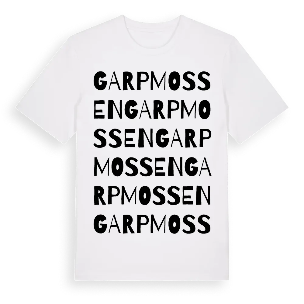 Garpmossen ordlek t-shirt är inspirerad av Garpmossen i Östergötlands län, Sverige. Tröjan är designad för dig som har en speciell koppling till platsen – oavsett om du bor här, har rötterna här eller bara älskar Garpmossen.