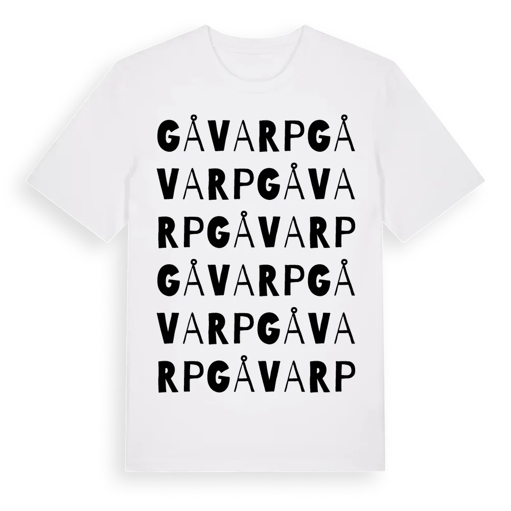 Gåvarp ordlek t-shirt är inspirerad av Gåvarp i Östergötlands län, Sverige. Tröjan är designad för dig som har en speciell koppling till platsen – oavsett om du bor här, har rötterna här eller bara älskar Gåvarp.