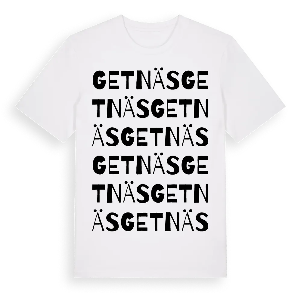 En ordlek byggd på Getnäss namn. Subtilt och klurig – ett motiv som bara de som verkligen känner platsen fullt ut förstår. Premium bomull, unisex – från Getnäs i Östergötlands län.