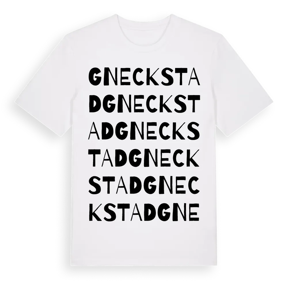 Gneckstad ordlek t-shirt är inspirerad av Gneckstad i Östergötlands län, Sverige. Tröjan är designad för dig som har en speciell koppling till platsen – oavsett om du bor här, har rötterna här eller bara älskar Gneckstad.