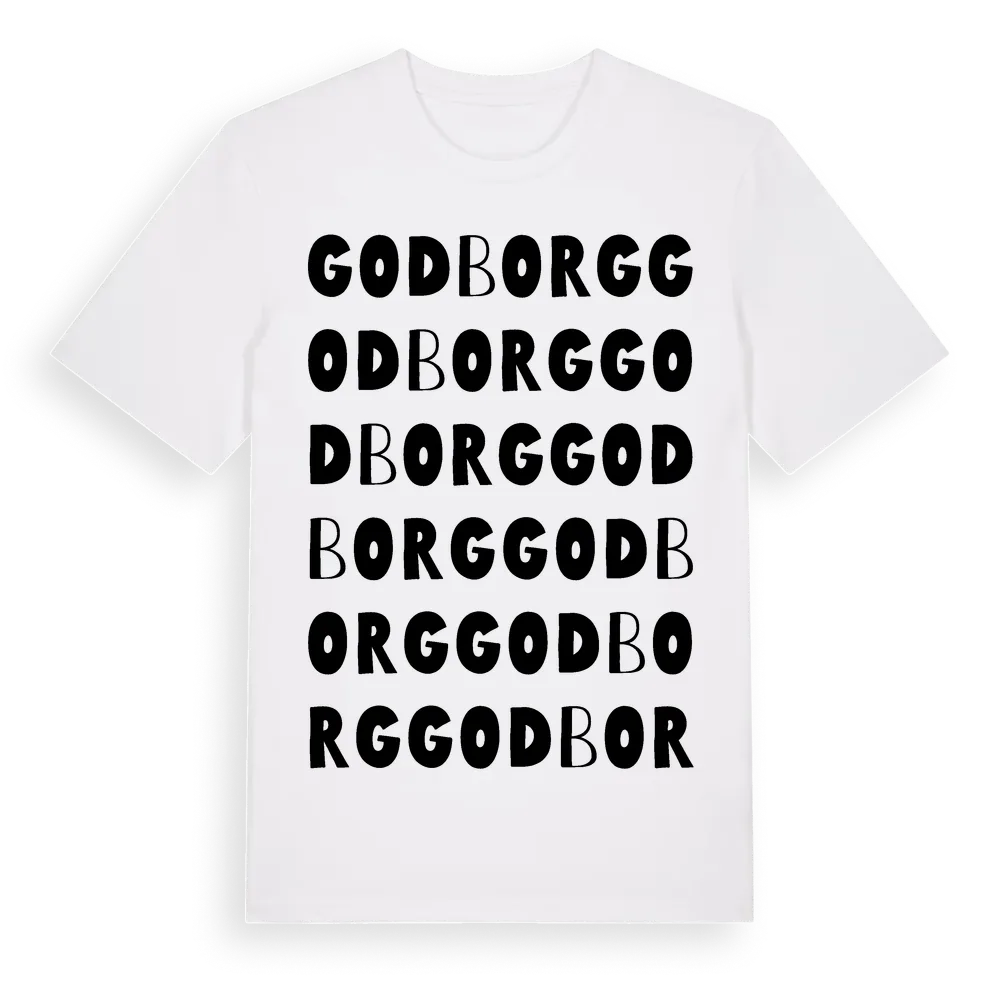 Godborg ordlek t-shirt är inspirerad av Godborg i Östergötlands län, Sverige. Tröjan är designad för dig som har en speciell koppling till platsen – oavsett om du bor här, har rötterna här eller bara älskar Godborg.