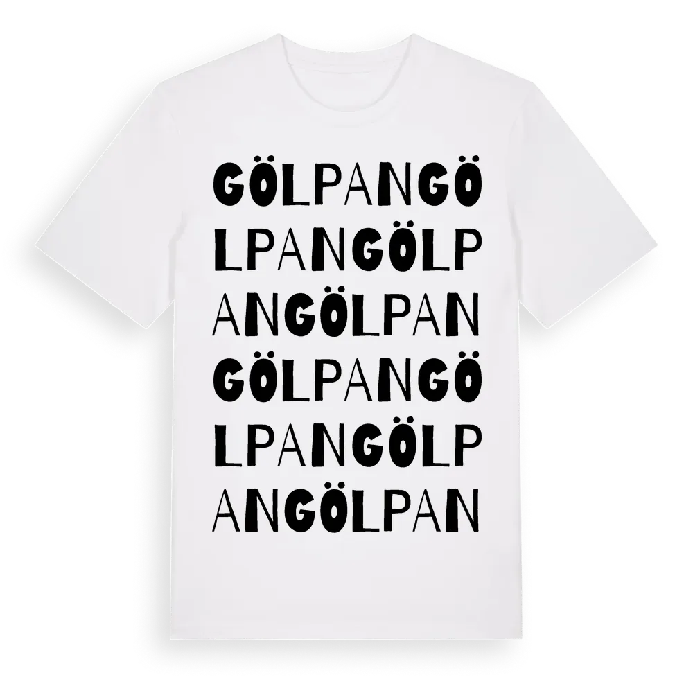 Gölpan ordlek t-shirt är inspirerad av Gölpan i Östergötlands län, Sverige. Tröjan är designad för dig som har en speciell koppling till platsen – oavsett om du bor här, har rötterna här eller bara älskar Gölpan.