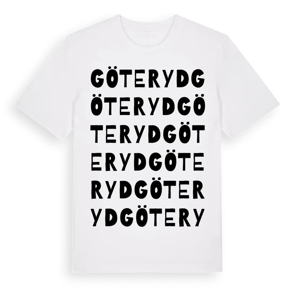 Göteryd ordlek t-shirt är inspirerad av Göteryd i Östergötlands län, Sverige. Tröjan är designad för dig som har en speciell koppling till platsen – oavsett om du bor här, har rötterna här eller bara älskar Göteryd.