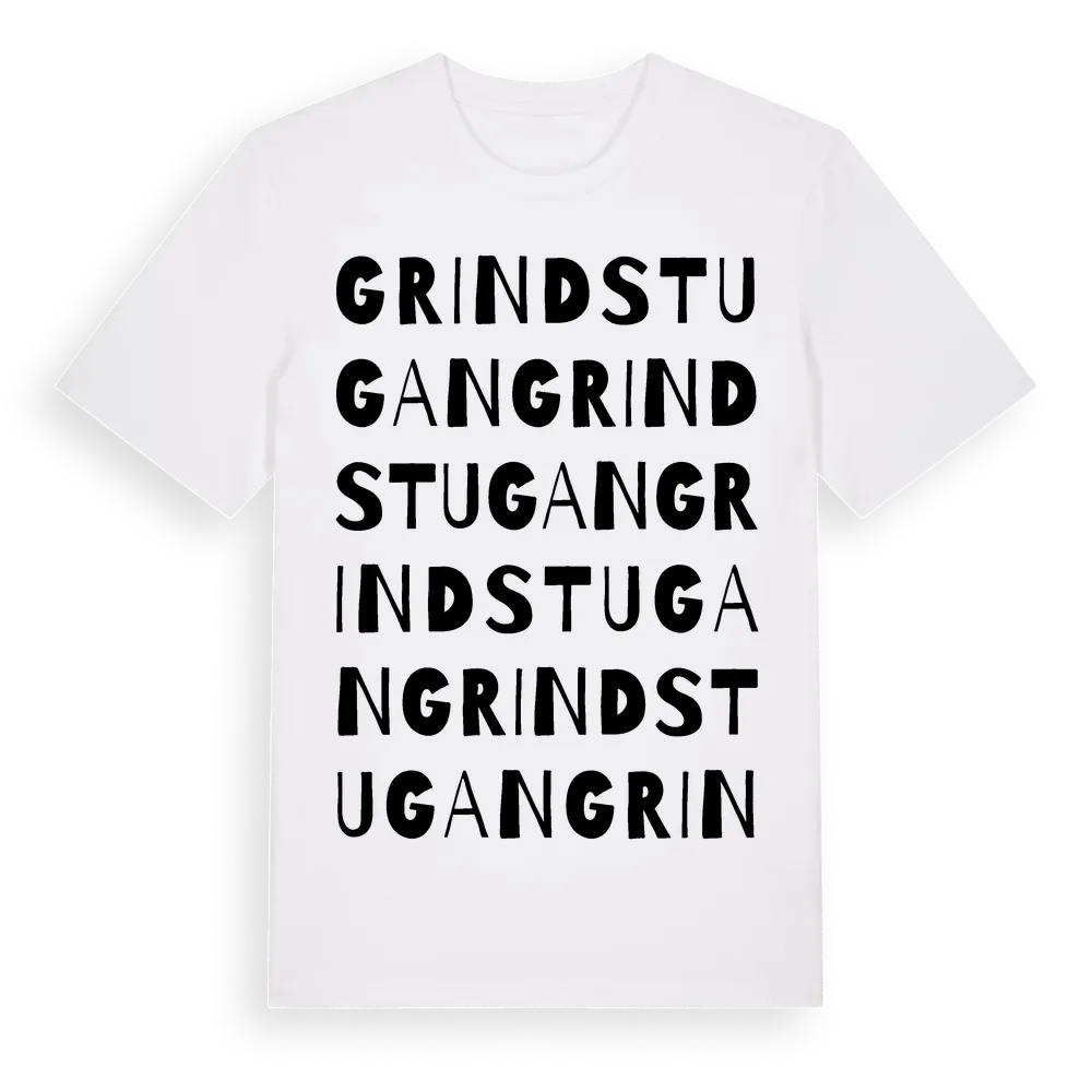Grindstugan ordlek t-shirt är inspirerad av Grindstugan i Östergötlands län, Sverige. Tröjan är designad för dig som har en speciell koppling till platsen – oavsett om du bor här, har rötterna här eller bara älskar Grindstugan.