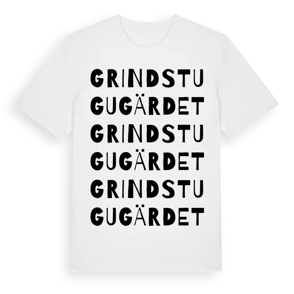 Grindstugugärdet ordlek t-shirt är inspirerad av Grindstugugärdet i Östergötlands län, Sverige. Tröjan är designad för dig som har en speciell koppling till platsen – oavsett om du bor här, har rötterna här eller bara älskar Grindstugugärdet.