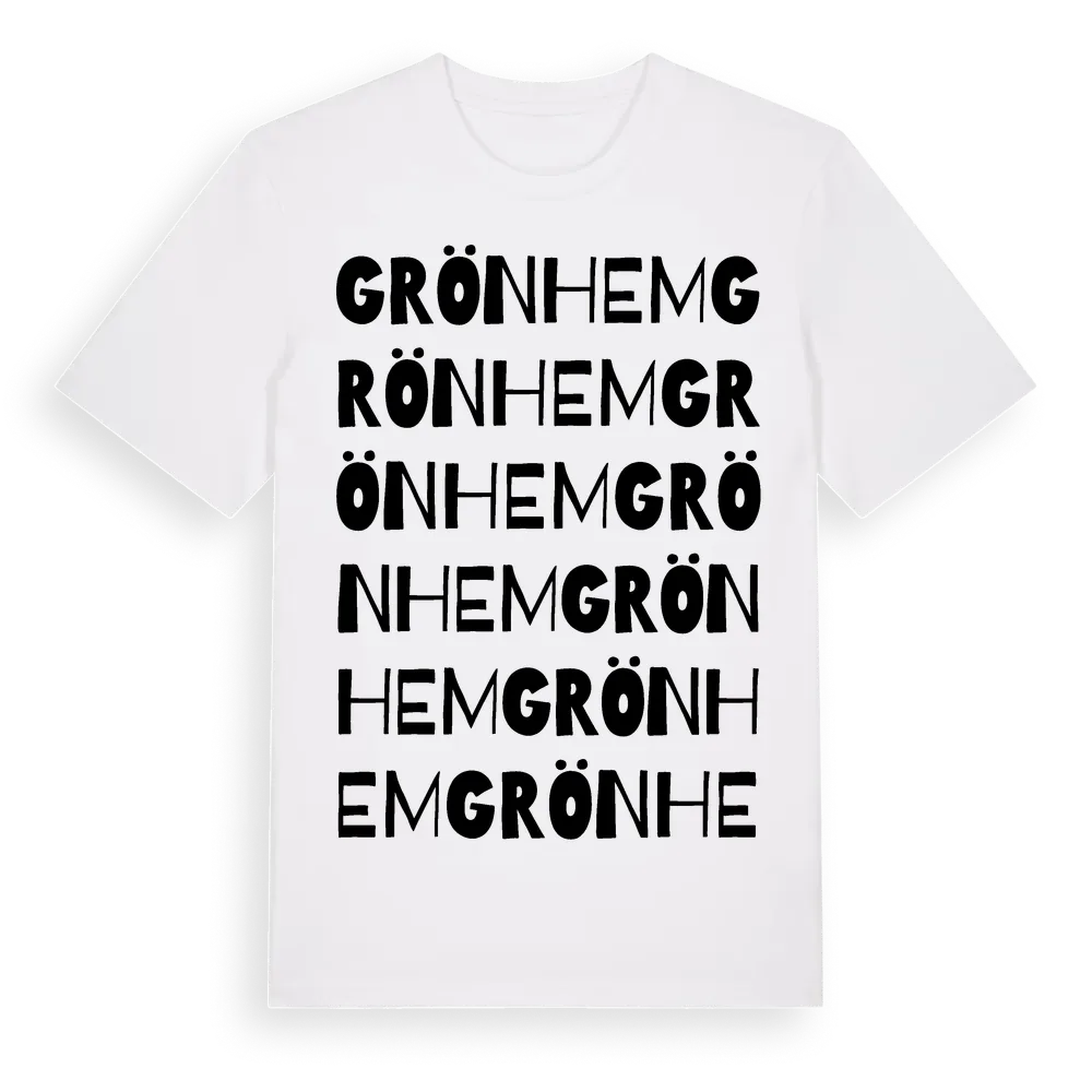 Grönhem ordlek t-shirt är inspirerad av Grönhem i Östergötlands län, Sverige. Tröjan är designad för dig som har en speciell koppling till platsen – oavsett om du bor här, har rötterna här eller bara älskar Grönhem.