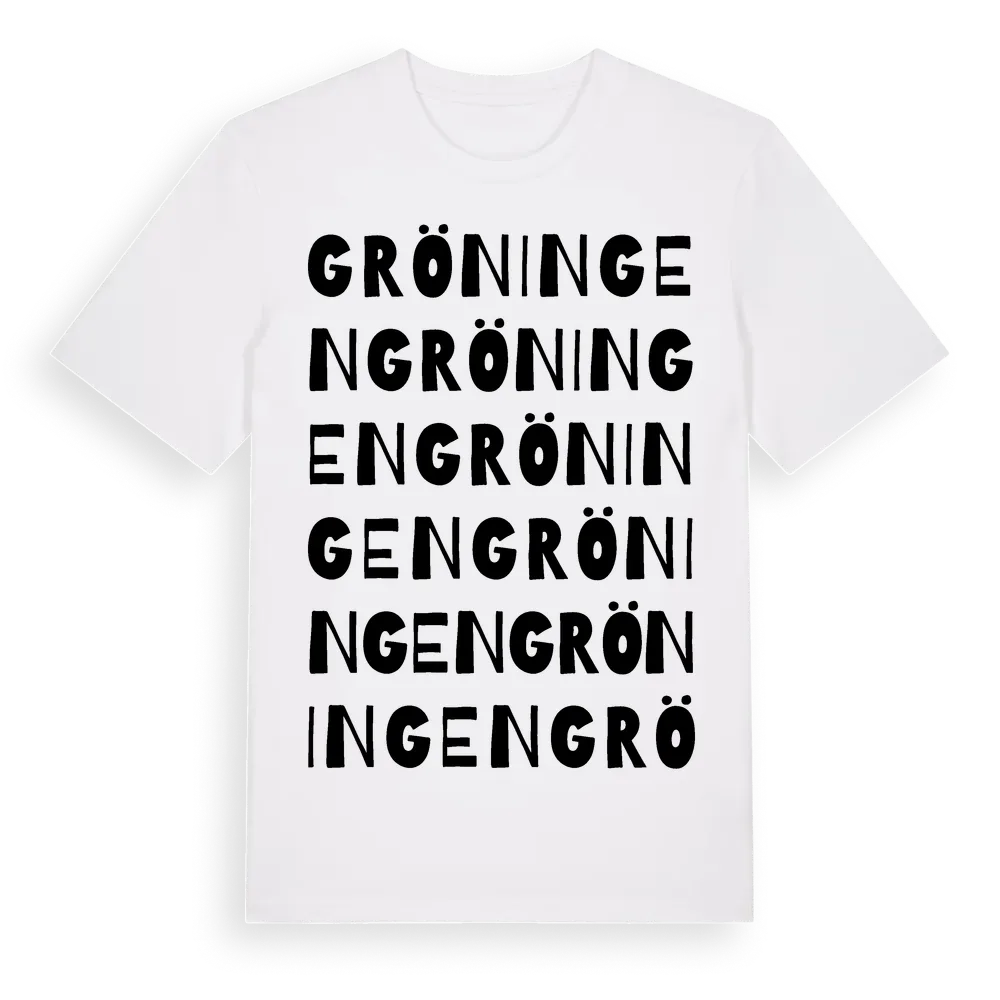 Gröningen ordlek t-shirt är inspirerad av Gröningen i Östergötlands län, Sverige. Tröjan är designad för dig som har en speciell koppling till platsen – oavsett om du bor här, har rötterna här eller bara älskar Gröningen.