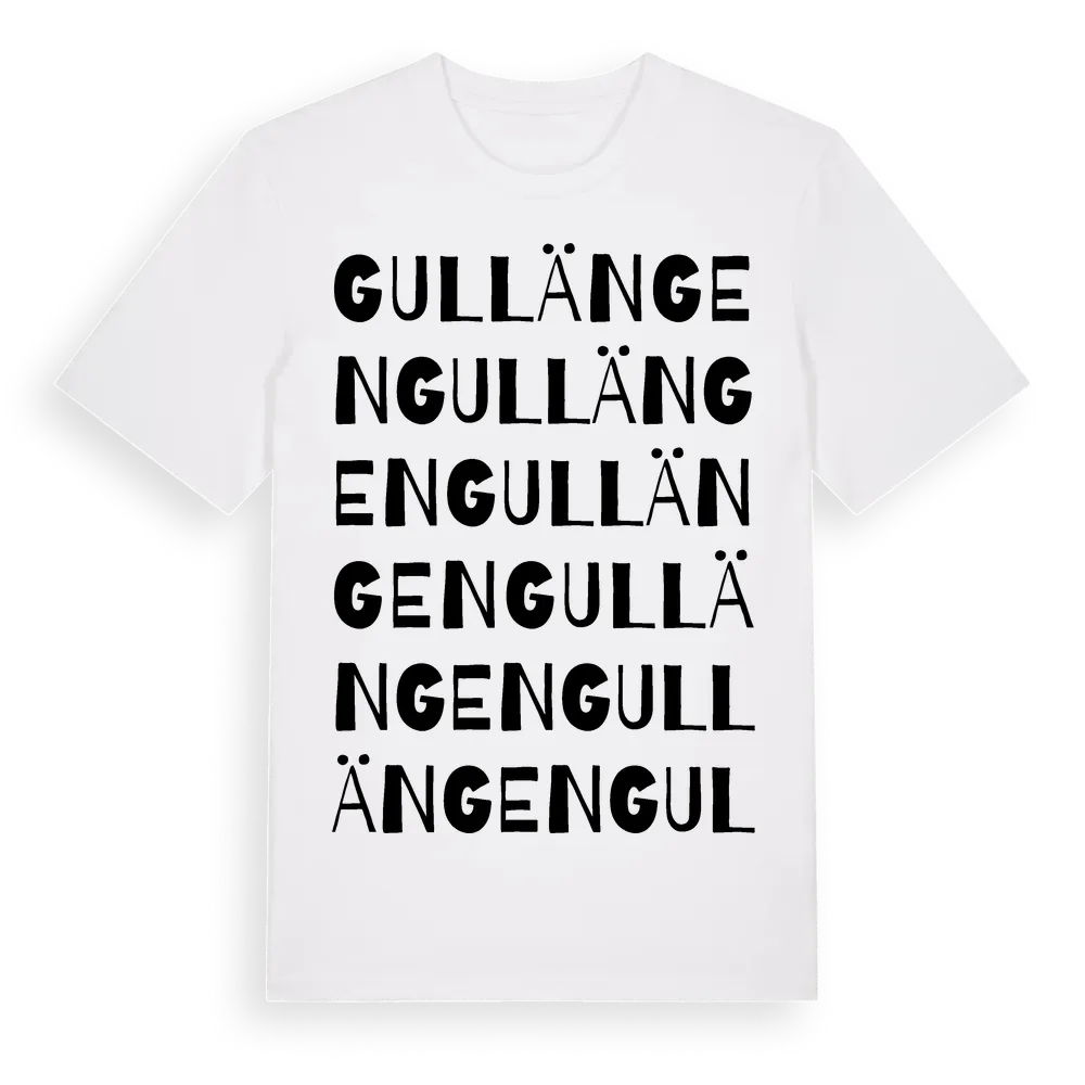 Gullängen ordlek t-shirt är inspirerad av Gullängen i Östergötlands län, Sverige. Tröjan är designad för dig som har en speciell koppling till platsen – oavsett om du bor här, har rötterna här eller bara älskar Gullängen.