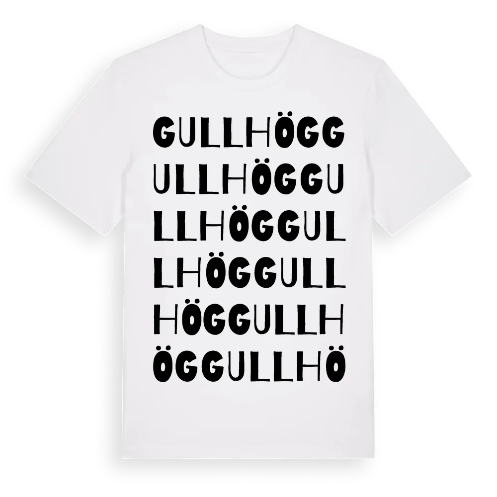 Gullhög ordlek t-shirt är inspirerad av Gullhög i Östergötlands län, Sverige. Tröjan är designad för dig som har en speciell koppling till platsen – oavsett om du bor här, har rötterna här eller bara älskar Gullhög.