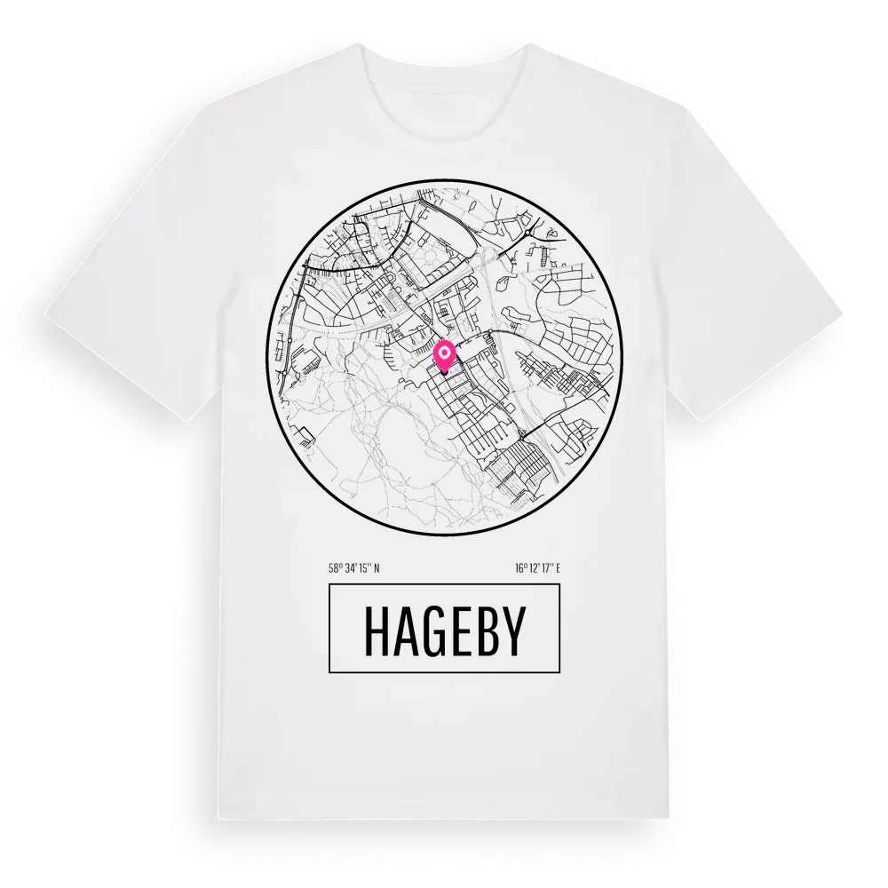 Hageby t-shirt är inspirerad av Hageby i Östergötlands län, Sverige. Tröjan är designad för dig som har en speciell koppling till platsen – oavsett om du bor här, har rötterna här eller bara älskar Hageby.