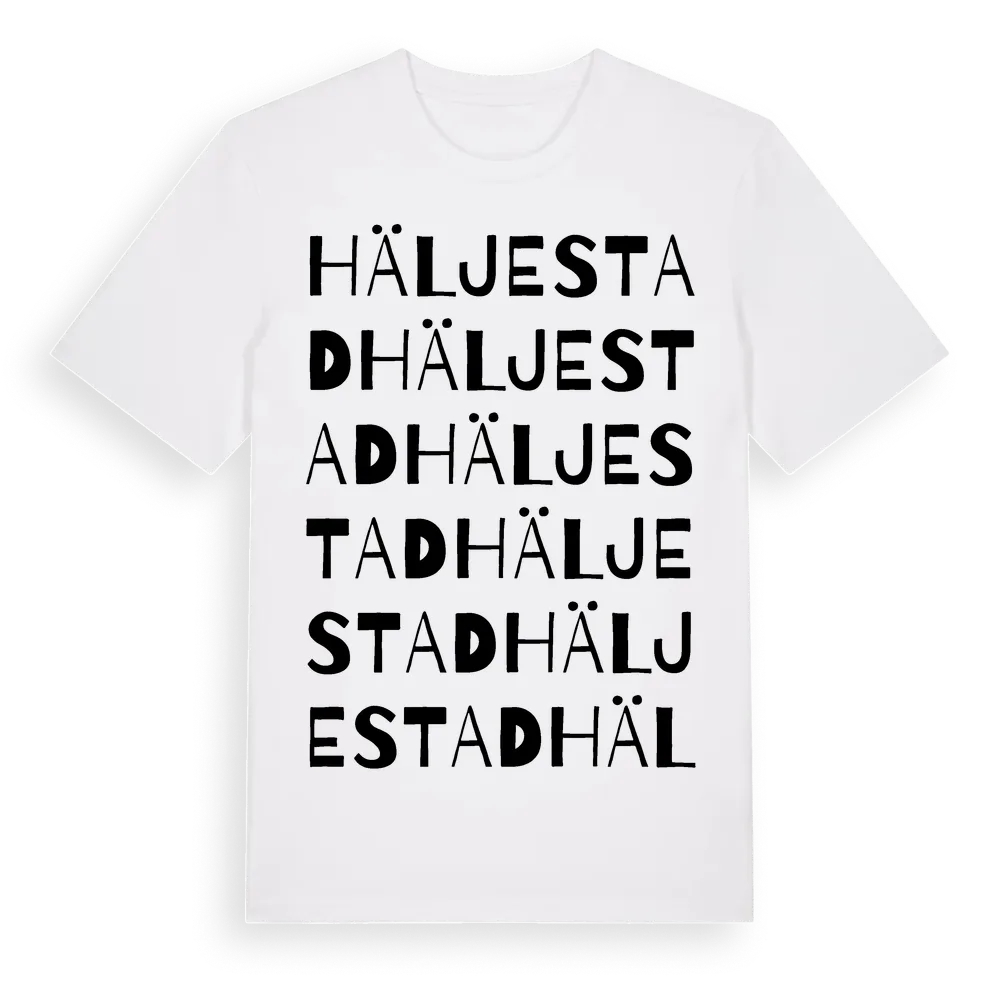 Häljestad ordlek t-shirt är inspirerad av Häljestad i Östergötlands län, Sverige. Tröjan är designad för dig som har en speciell koppling till platsen – oavsett om du bor här, har rötterna här eller bara älskar Häljestad.