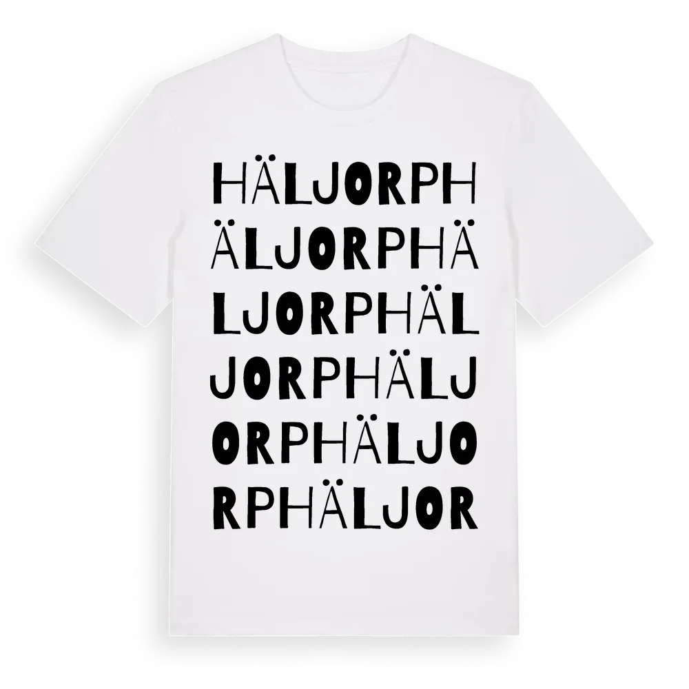 Häljorp ordlek t-shirt är inspirerad av Häljorp i Östergötlands län, Sverige. Tröjan är designad för dig som har en speciell koppling till platsen – oavsett om du bor här, har rötterna här eller bara älskar Häljorp.