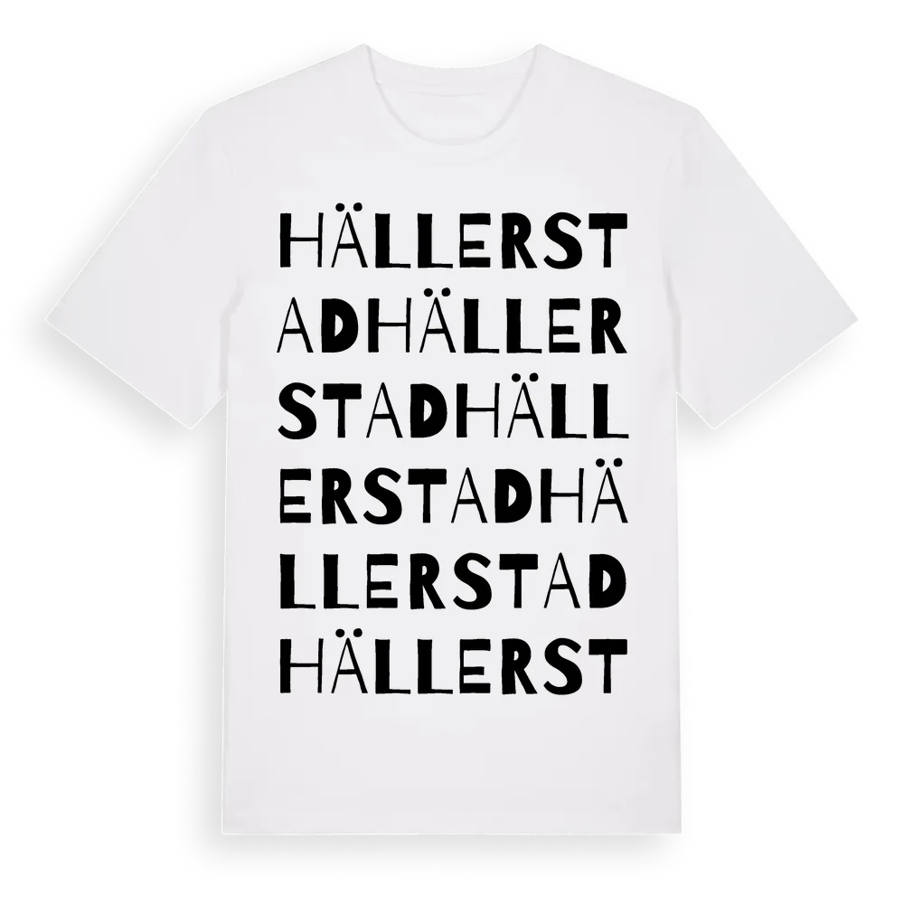 Hällerstad ordlek t-shirt är inspirerad av Hällerstad i Östergötlands län, Sverige. Tröjan är designad för dig som har en speciell koppling till platsen – oavsett om du bor här, har rötterna här eller bara älskar Hällerstad.