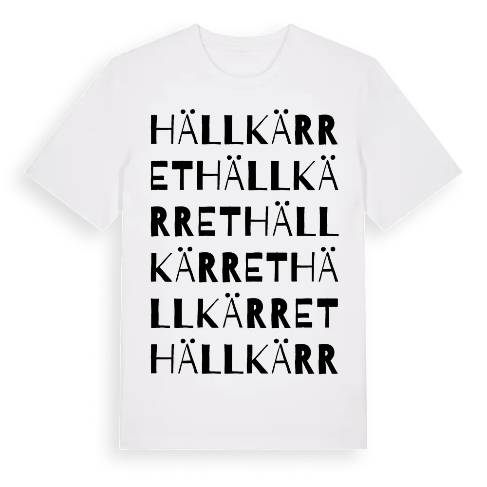 Hällkärret ordlek t-shirt är inspirerad av Hällkärret i Östergötlands län, Sverige. Tröjan är designad för dig som har en speciell koppling till platsen – oavsett om du bor här, har rötterna här eller bara älskar Hällkärret.