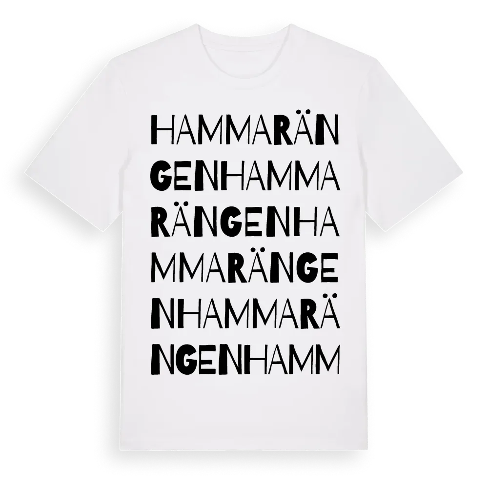 Hammarängen ordlek t-shirt är inspirerad av Hammarängen i Östergötlands län, Sverige. Tröjan är designad för dig som har en speciell koppling till platsen – oavsett om du bor här, har rötterna här eller bara älskar Hammarängen.