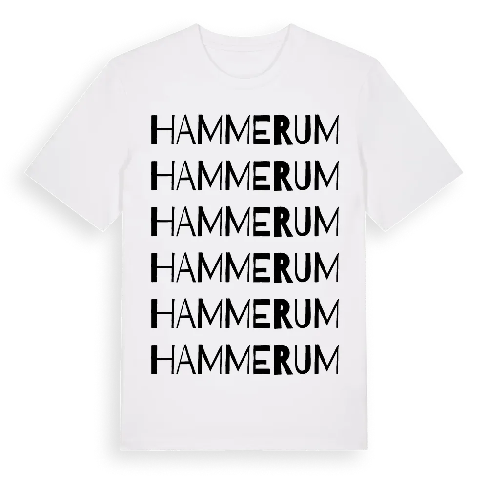 Hammerum ordlek t-shirt är inspirerad av Hammerum i Östergötlands län, Sverige. Tröjan är designad för dig som har en speciell koppling till platsen – oavsett om du bor här, har rötterna här eller bara älskar Hammerum.