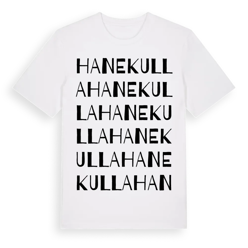 Hanekulla ordlek t-shirt är inspirerad av Hanekulla i Östergötlands län, Sverige. Tröjan är designad för dig som har en speciell koppling till platsen – oavsett om du bor här, har rötterna här eller bara älskar Hanekulla.