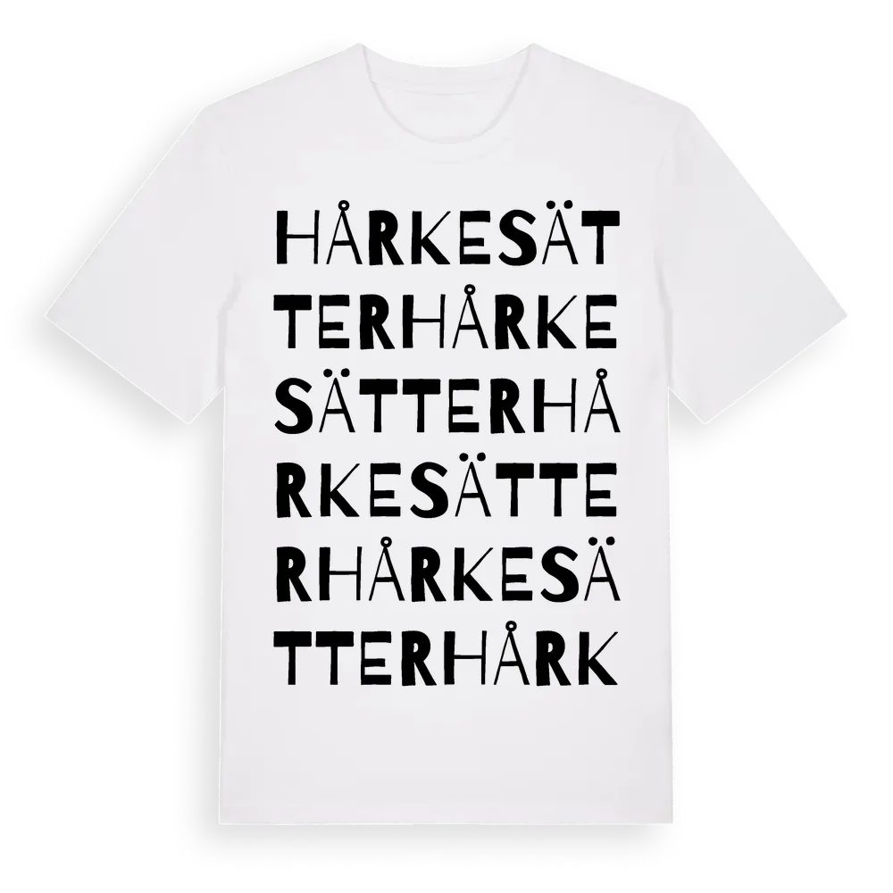 Hårkesätter ordlek t-shirt är inspirerad av byn Hårkesätter i Östergötlands län, Sverige. Tröjan är designad för dig som har en speciell koppling till platsen – oavsett om du bor här, har rötterna här eller bara älskar Hårkesätter.
