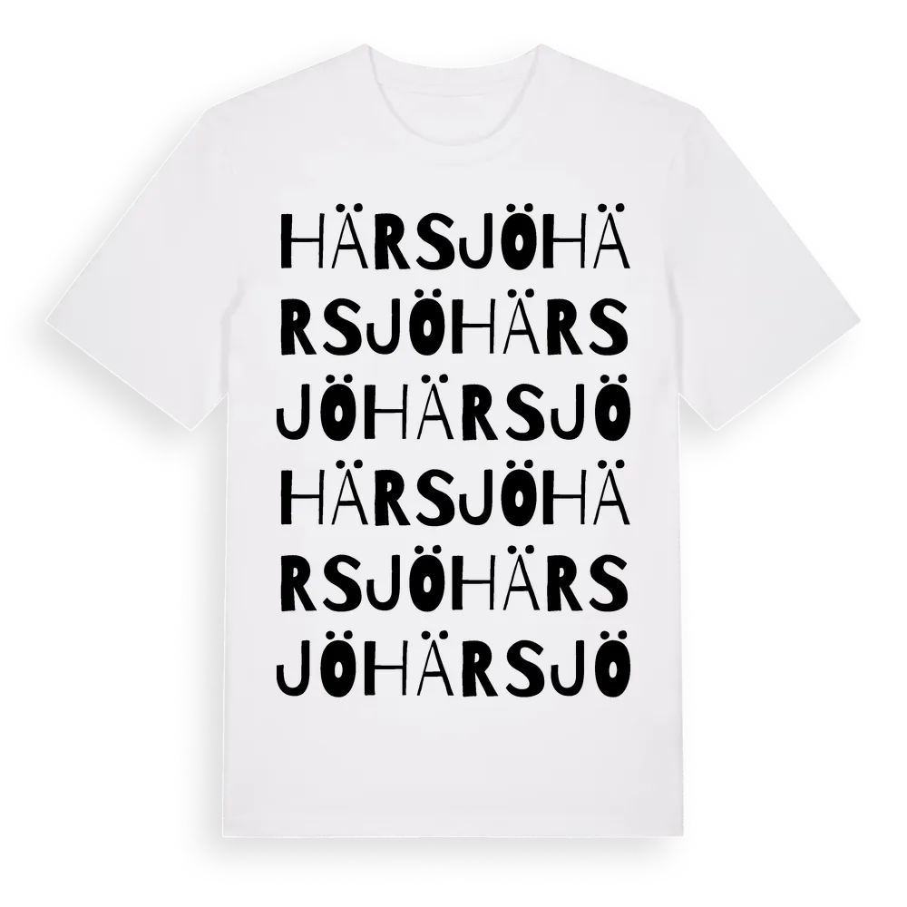 Härsjö ordlek t-shirt är inspirerad av byn Härsjö i Östergötlands län, Sverige. Tröjan är designad för dig som har en speciell koppling till platsen – oavsett om du bor här, har rötterna här eller bara älskar Härsjö.