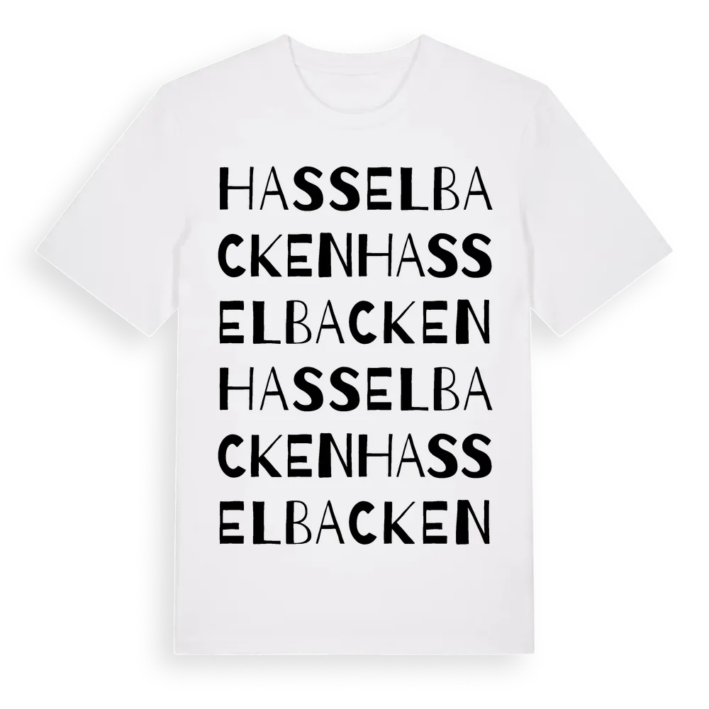 Hasselbacken ordlek t-shirt är inspirerad av Hasselbacken i Östergötlands län, Sverige. Tröjan är designad för dig som har en speciell koppling till platsen – oavsett om du bor här, har rötterna här eller bara älskar Hasselbacken.