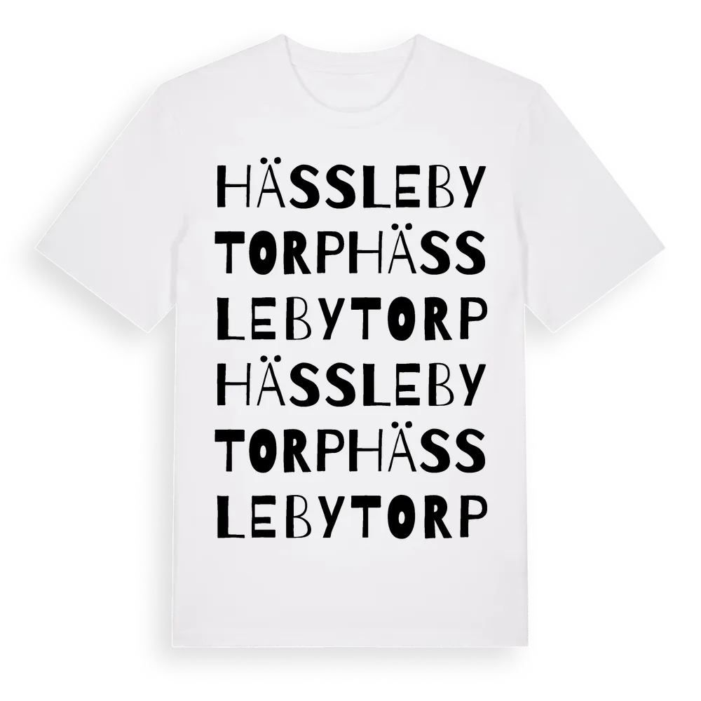 Hässlebytorp ordlek t-shirt är inspirerad av Hässlebytorp i Östergötlands län, Sverige. Tröjan är designad för dig som har en speciell koppling till platsen – oavsett om du bor här, har rötterna här eller bara älskar Hässlebytorp.