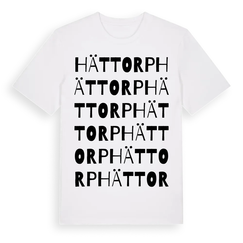 Hättorp ordlek t-shirt är inspirerad av Hättorp i Östergötlands län, Sverige. Tröjan är designad för dig som har en speciell koppling till platsen – oavsett om du bor här, har rötterna här eller bara älskar Hättorp.