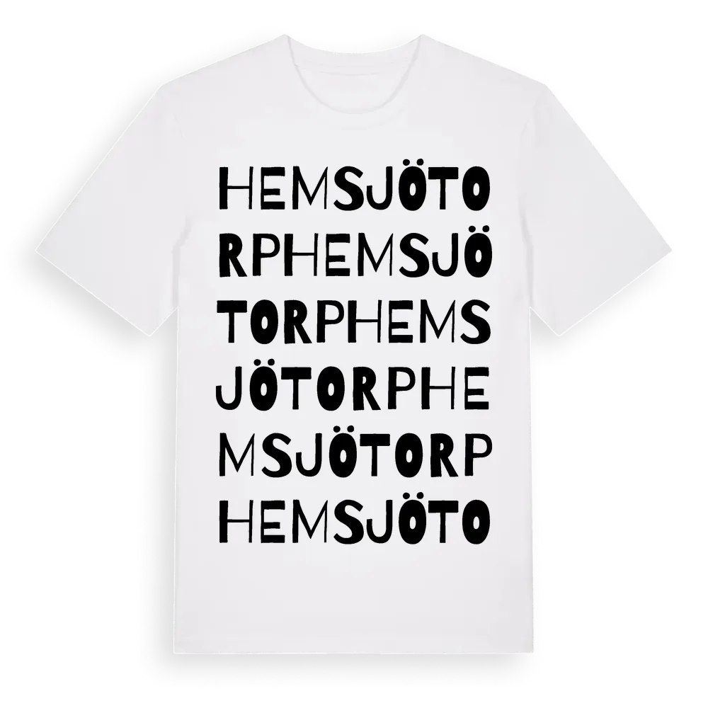 Hemsjötorp ordlek t-shirt är inspirerad av Hemsjötorp i Östergötlands län, Sverige. Tröjan är designad för dig som har en speciell koppling till platsen – oavsett om du bor här, har rötterna här eller bara älskar Hemsjötorp.