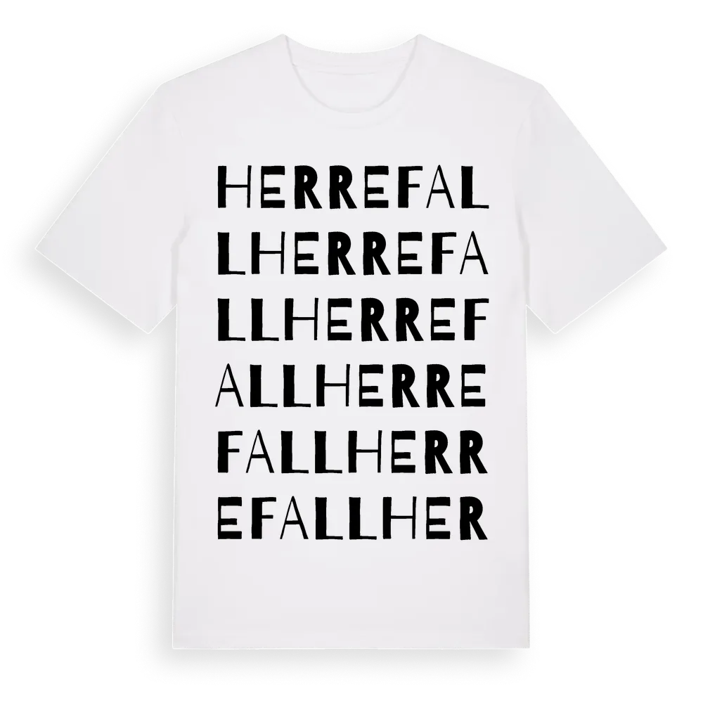 Herrefall ordlek t-shirt är inspirerad av Herrefall i Östergötlands län, Sverige. Tröjan är designad för dig som har en speciell koppling till platsen – oavsett om du bor här, har rötterna här eller bara älskar Herrefall.