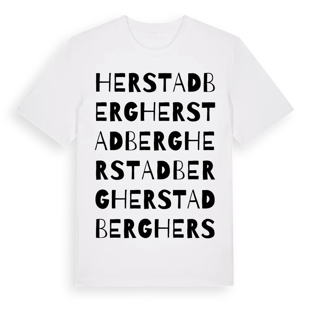 Herstadberg ordlek t-shirt är inspirerad av Herstadberg i Östergötlands län, Sverige. Tröjan är designad för dig som har en speciell koppling till platsen – oavsett om du bor här, har rötterna här eller bara älskar Herstadberg.