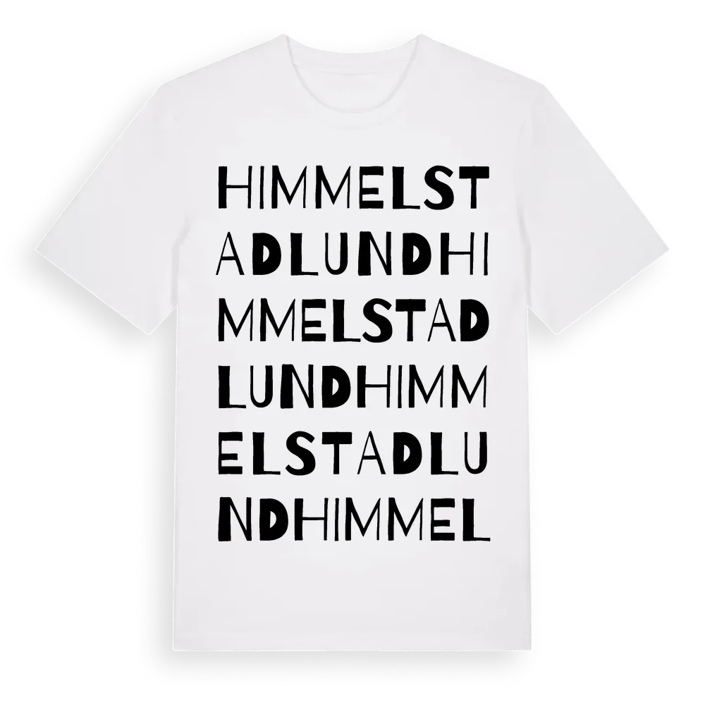 Himmelstadlund ordlek t-shirt är inspirerad av Himmelstadlund i Östergötlands län, Sverige. Tröjan är designad för dig som har en speciell koppling till platsen – oavsett om du bor här, har rötterna här eller bara älskar Himmelstadlund.