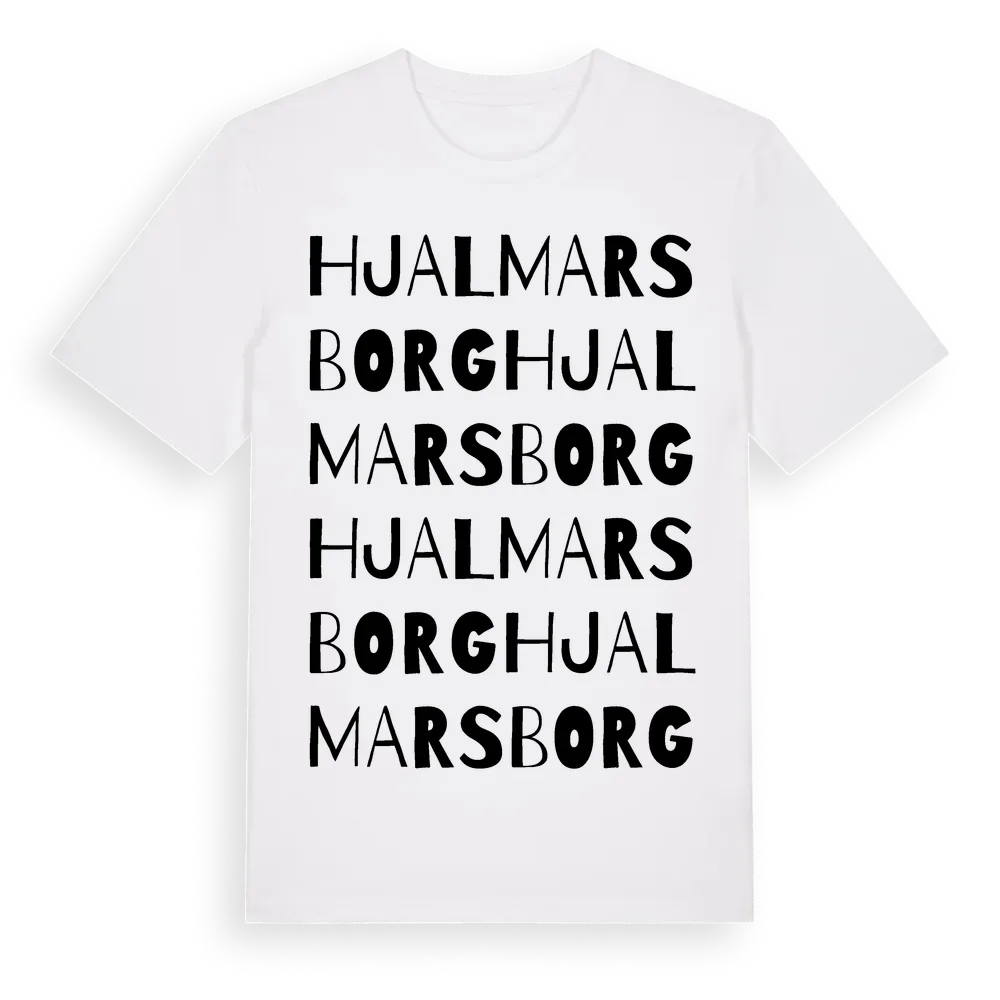 Hjalmarsborg ordlek t-shirt är inspirerad av Hjalmarsborg i Östergötlands län, Sverige. Tröjan är designad för dig som har en speciell koppling till platsen – oavsett om du bor här, har rötterna här eller bara älskar Hjalmarsborg.