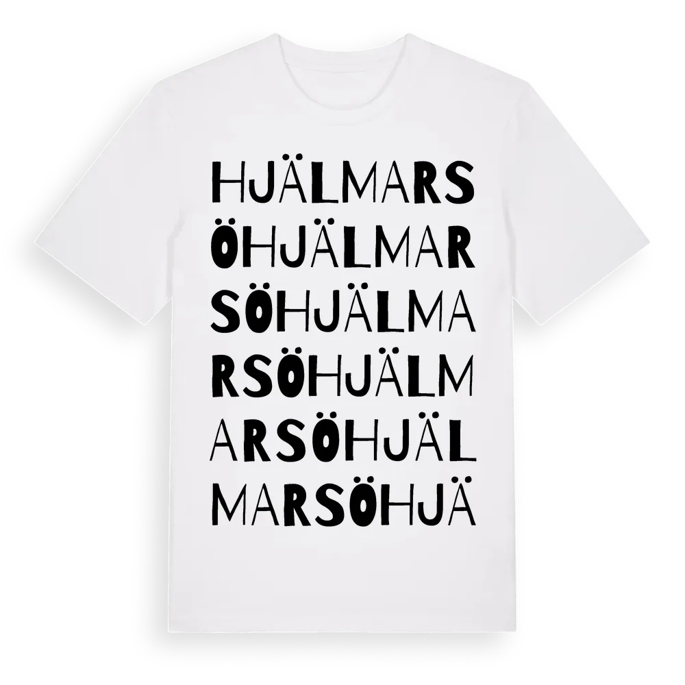Hjälmarsö ordlek t-shirt är inspirerad av Hjälmarsö i Östergötlands län, Sverige. Tröjan är designad för dig som har en speciell koppling till platsen – oavsett om du bor här, har rötterna här eller bara älskar Hjälmarsö.