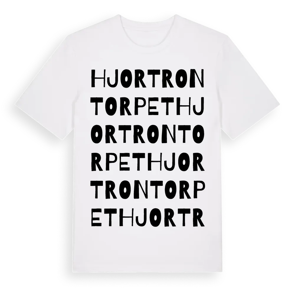 Hjortrontorpet ordlek t-shirt är inspirerad av Hjortrontorpet i Östergötlands län, Sverige. Tröjan är designad för dig som har en speciell koppling till platsen – oavsett om du bor här, har rötterna här eller bara älskar Hjortrontorpet.