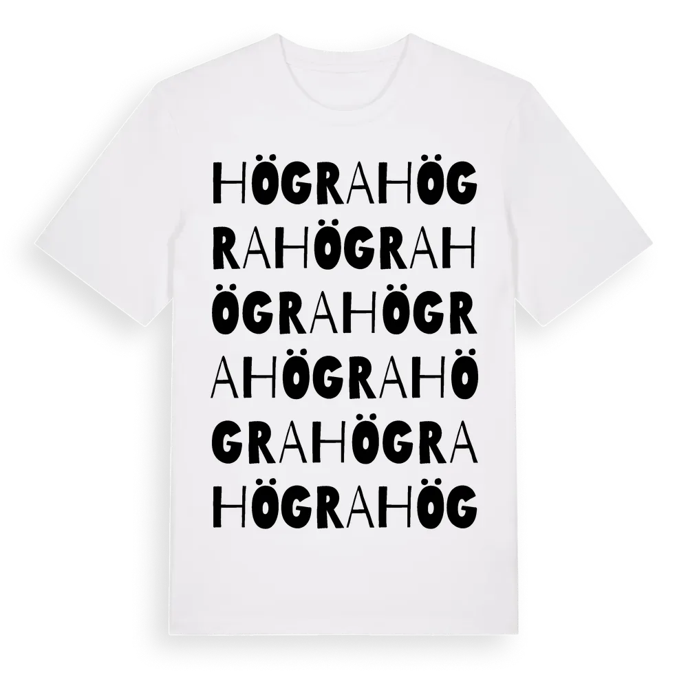 Högra ordlek t-shirt är inspirerad av Högra i Östergötlands län, Sverige. Tröjan är designad för dig som har en speciell koppling till platsen – oavsett om du bor här, har rötterna här eller bara älskar Högra.