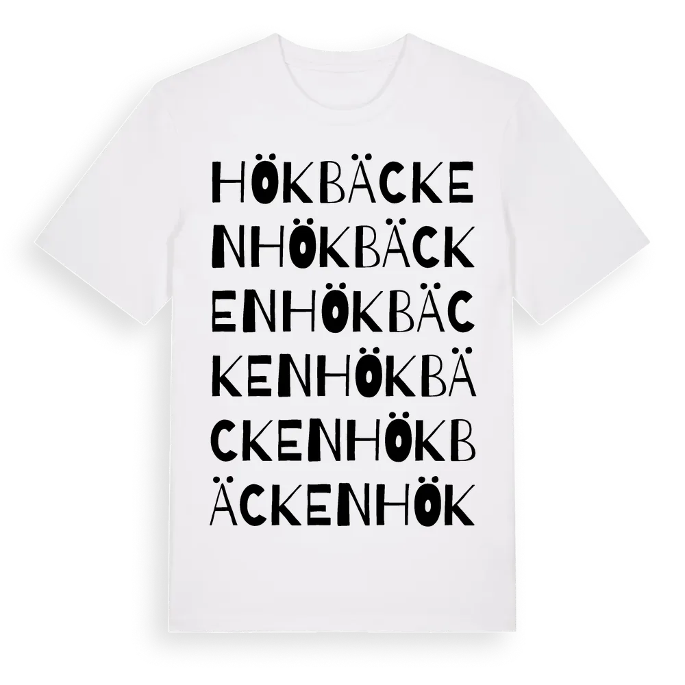 Hökbäcken ordlek t-shirt är inspirerad av Hökbäcken i Östergötlands län, Sverige. Tröjan är designad för dig som har en speciell koppling till platsen – oavsett om du bor här, har rötterna här eller bara älskar Hökbäcken.