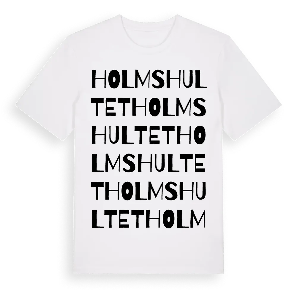 Holmshultet ordlek t-shirt är inspirerad av Holmshultet i Östergötlands län, Sverige. Tröjan är designad för dig som har en speciell koppling till platsen – oavsett om du bor här, har rötterna här eller bara älskar Holmshultet.