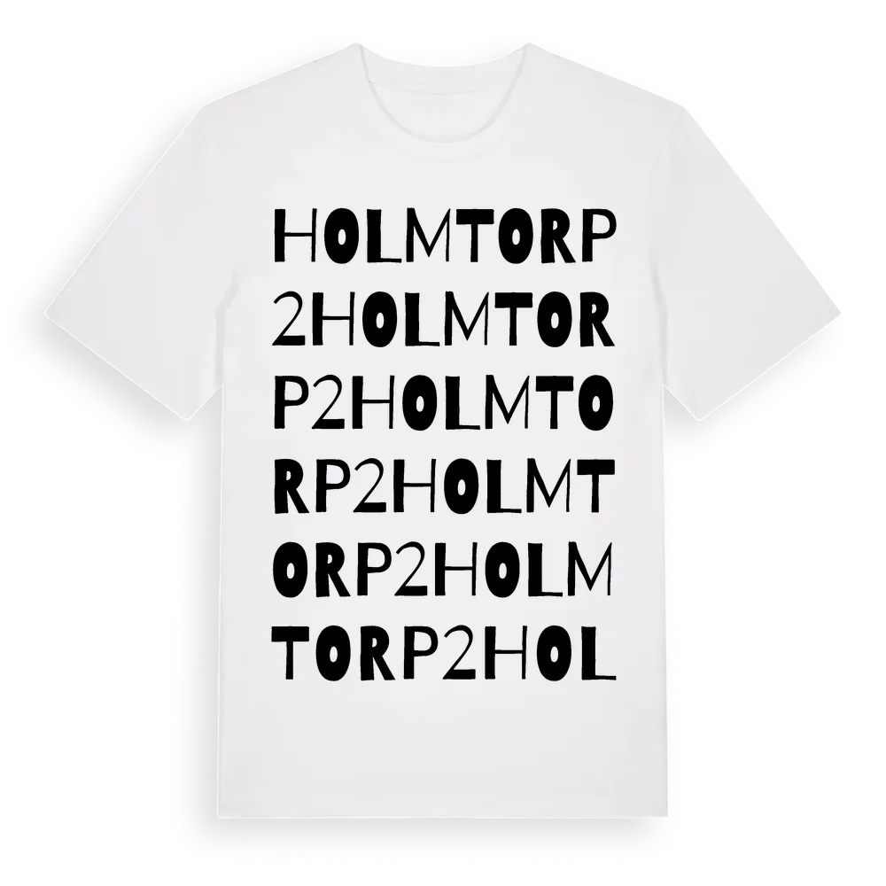 Holmtorp 2 ordlek t-shirt är inspirerad av Holmtorp 2 i Östergötlands län, Sverige. Tröjan är designad för dig som har en speciell koppling till platsen – oavsett om du bor här, har rötterna här eller bara älskar Holmtorp 2.
