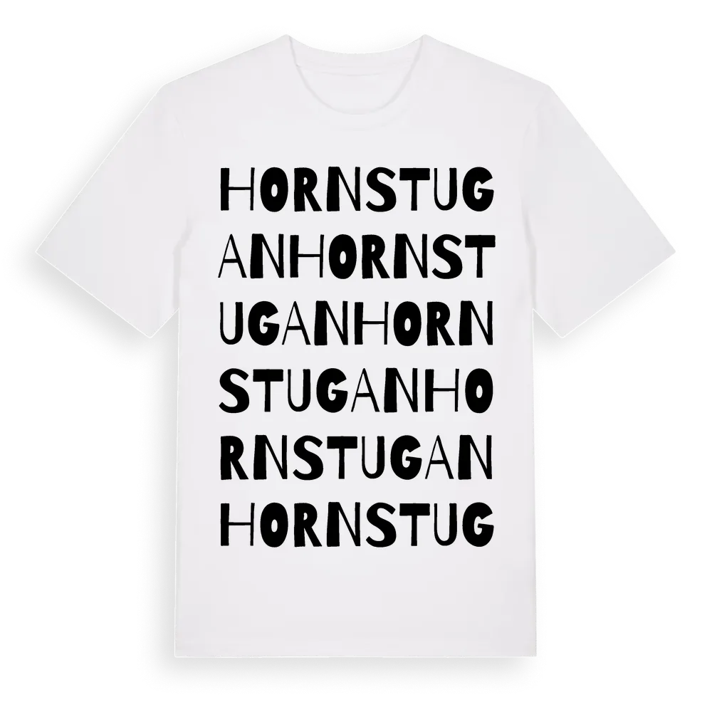 Hornstugan ordlek t-shirt är inspirerad av Hornstugan i Östergötlands län, Sverige. Tröjan är designad för dig som har en speciell koppling till platsen – oavsett om du bor här, har rötterna här eller bara älskar Hornstugan.