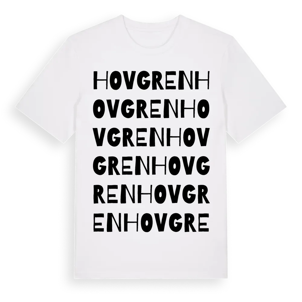 Hovgren ordlek t-shirt är inspirerad av byn Hovgren i Östergötlands län, Sverige. Tröjan är designad för dig som har en speciell koppling till platsen – oavsett om du bor här, har rötterna här eller bara älskar Hovgren.