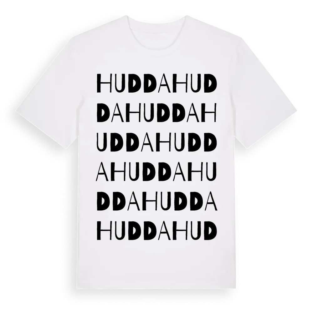 Hudda ordlek t-shirt är inspirerad av byn Hudda i Östergötlands län, Sverige. Tröjan är designad för dig som har en speciell koppling till platsen – oavsett om du bor här, har rötterna här eller bara älskar Hudda.