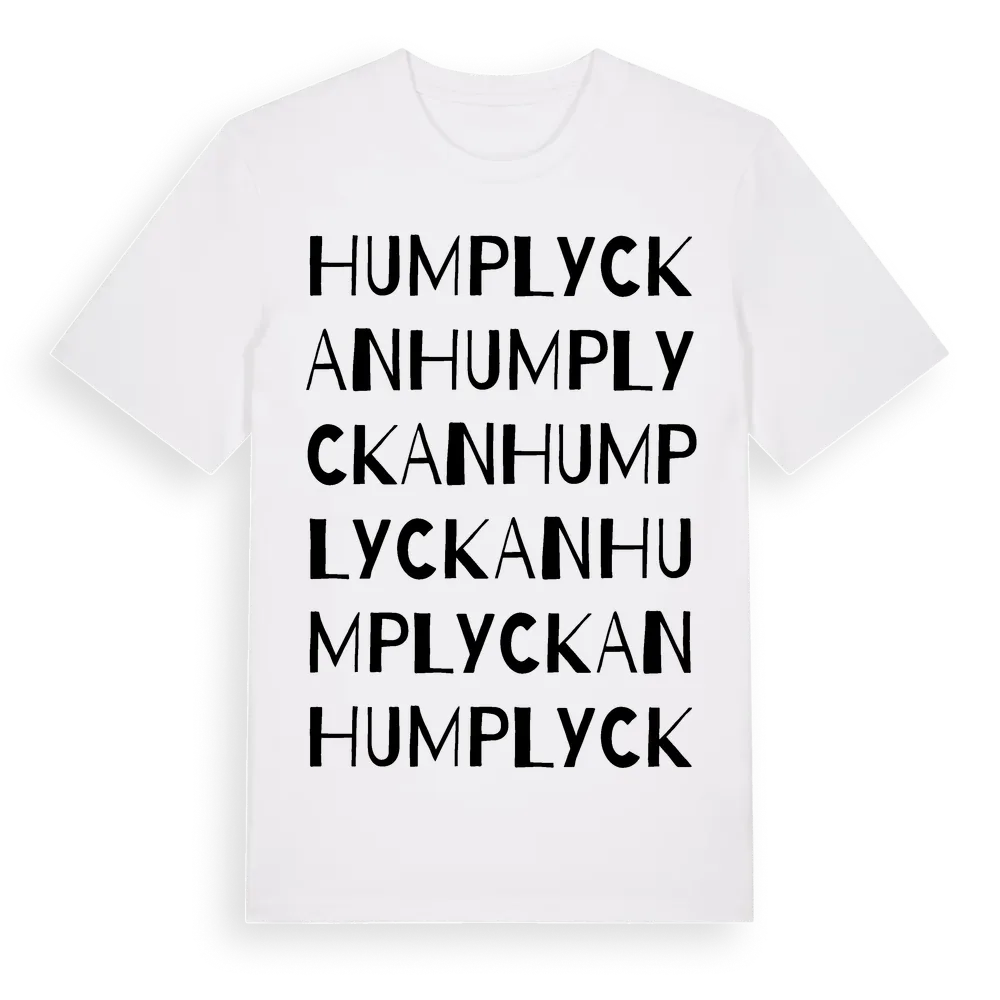 En ordlek byggd på Humplyckans namn. Subtilt och klurig – ett motiv som bara de som verkligen känner platsen fullt ut förstår. Premium bomull, unisex – från Humplyckan i Östergötlands län.
