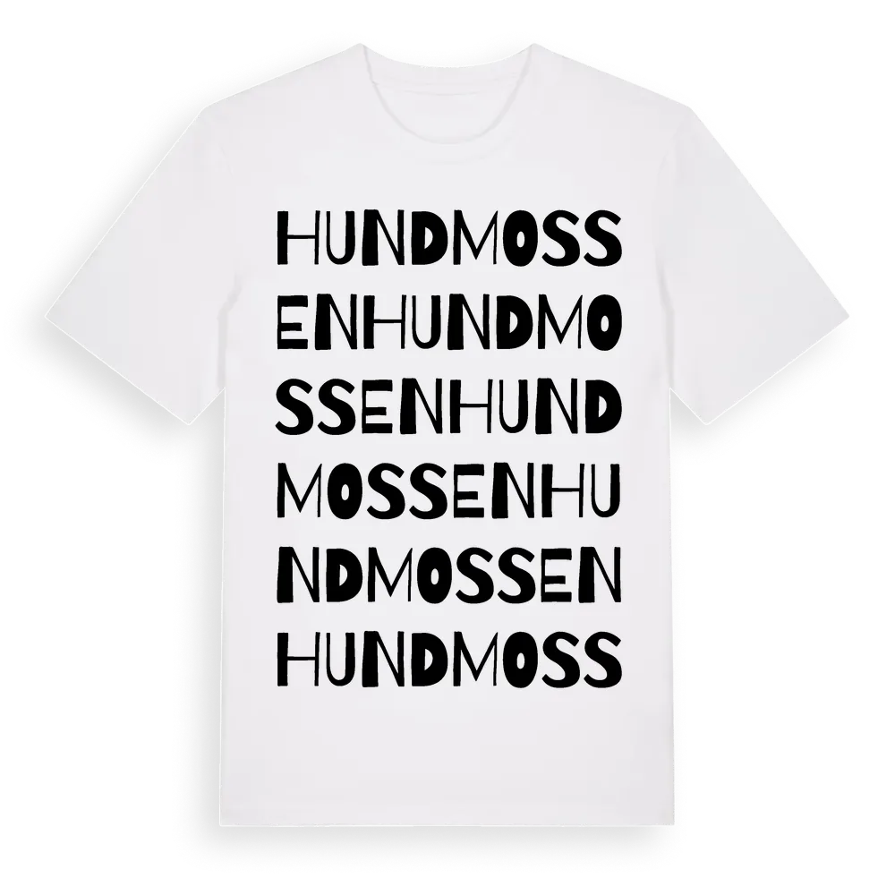 Hundmossen ordlek t-shirt är inspirerad av Hundmossen i Östergötlands län, Sverige. Tröjan är designad för dig som har en speciell koppling till platsen – oavsett om du bor här, har rötterna här eller bara älskar Hundmossen.