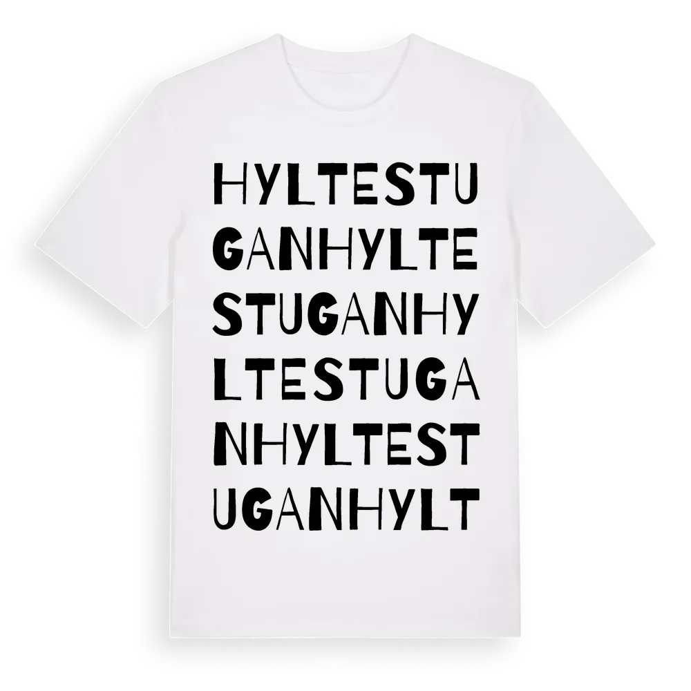Hyltestugan ordlek t-shirt är inspirerad av Hyltestugan i Östergötlands län, Sverige. Tröjan är designad för dig som har en speciell koppling till platsen – oavsett om du bor här, har rötterna här eller bara älskar Hyltestugan.