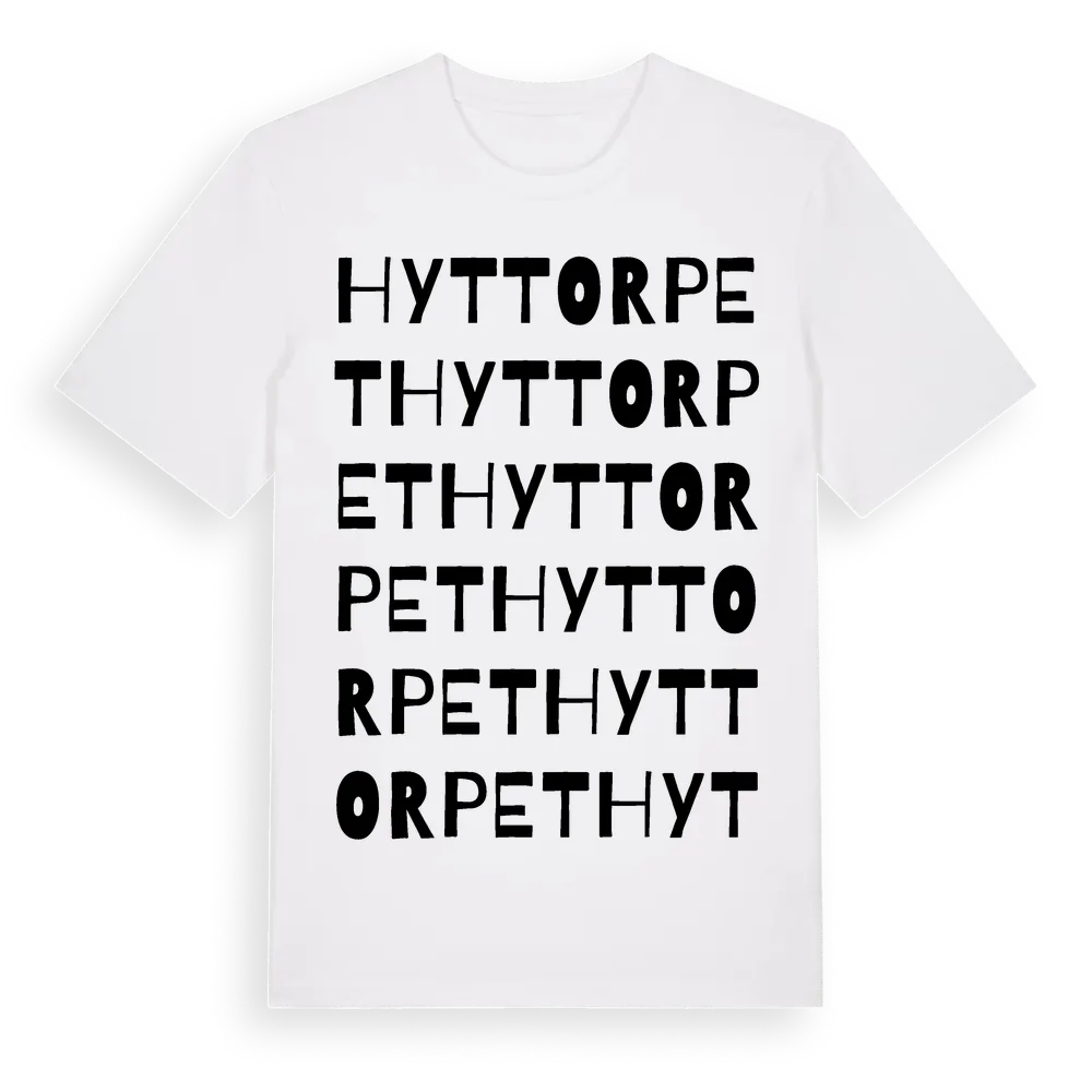 Hyttorpet ordlek t-shirt är inspirerad av Hyttorpet i Östergötlands län, Sverige. Tröjan är designad för dig som har en speciell koppling till platsen – oavsett om du bor här, har rötterna här eller bara älskar Hyttorpet.