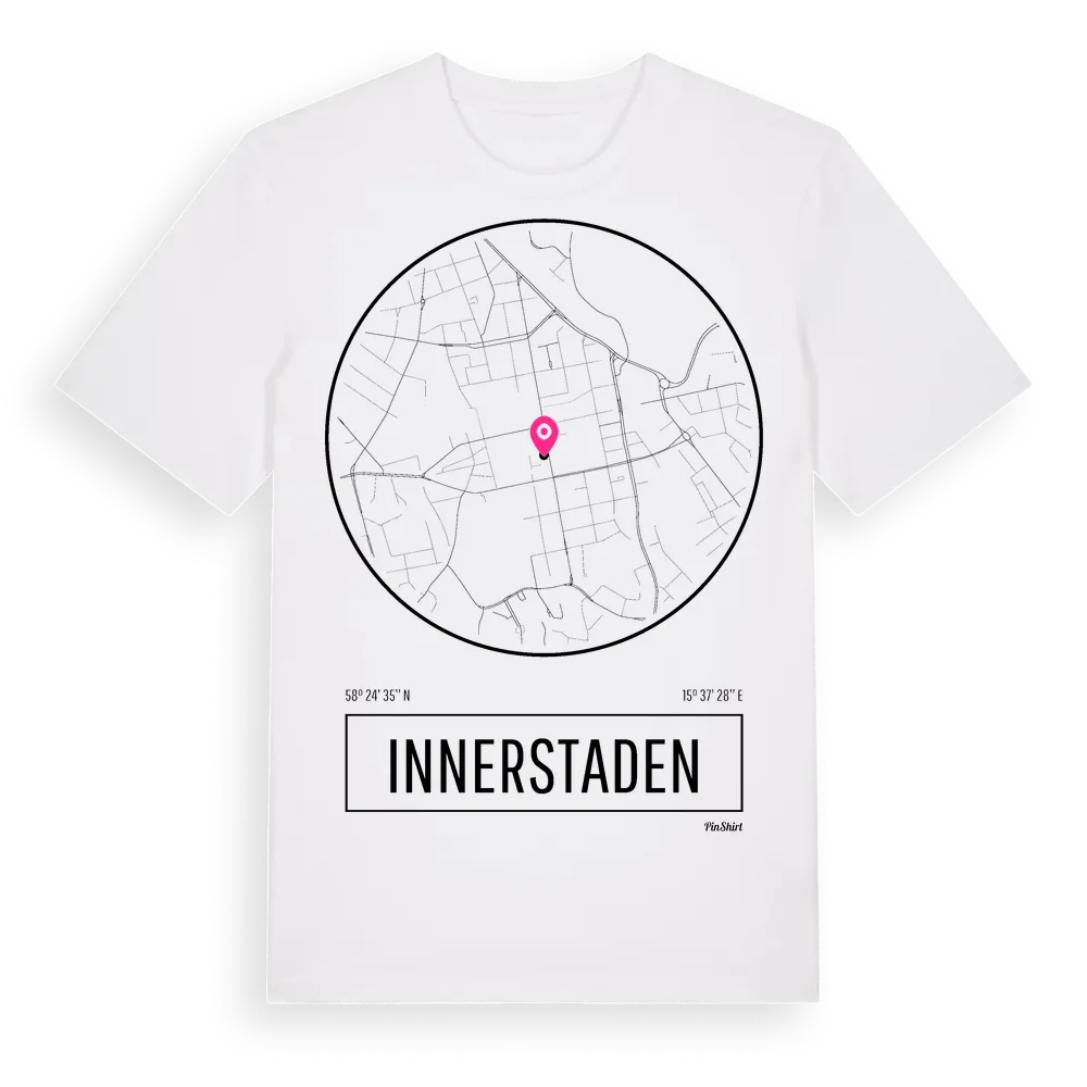 Innerstaden t-shirt är inspirerad av stadsdelen Innerstaden i Östergötlands län, Sverige. Tröjan är designad för dig som har en speciell koppling till platsen – oavsett om du bor här, har rötterna här eller bara älskar Innerstaden.