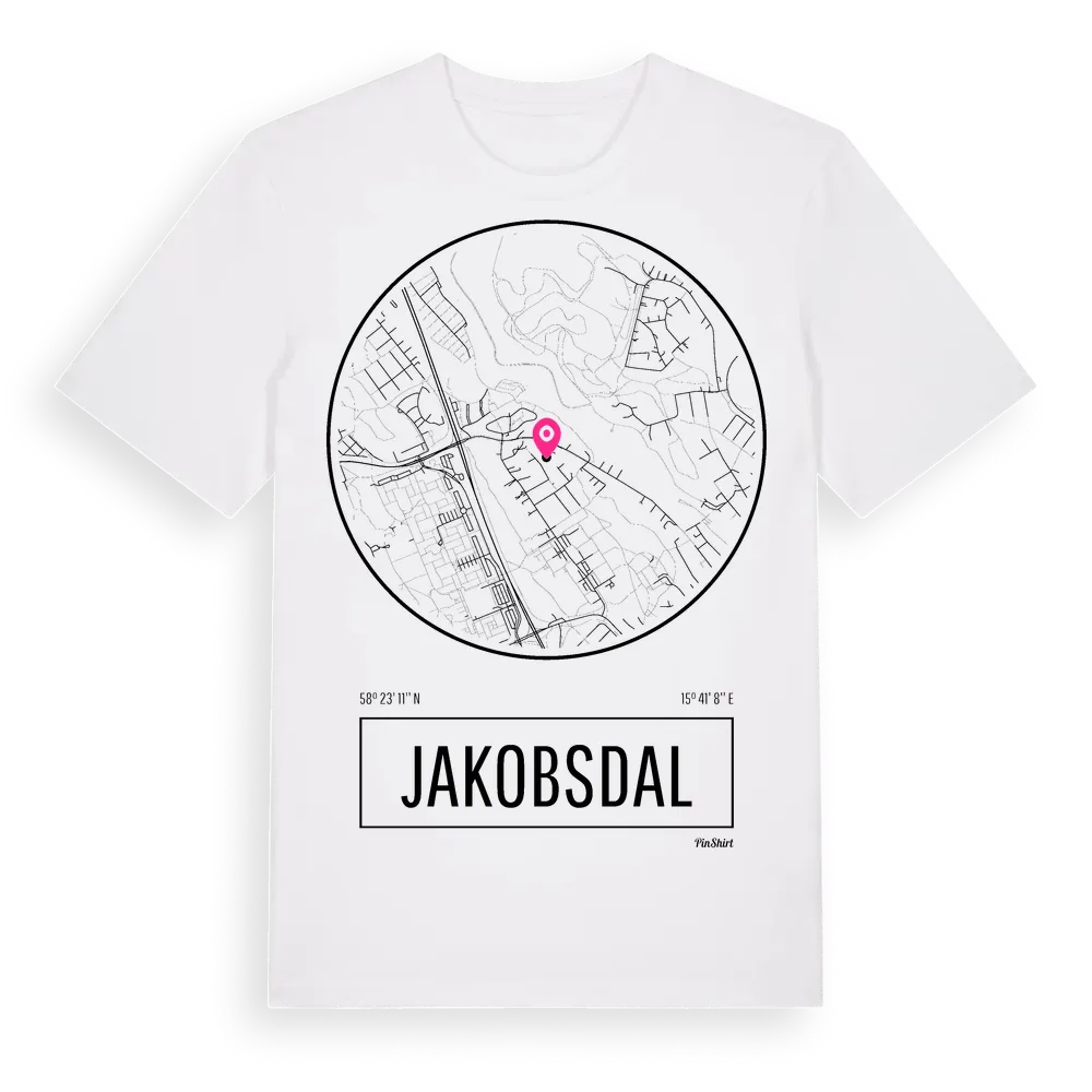 Jakobsdal t-shirt är inspirerad av stadsdelen Jakobsdal i Östergötlands län, Sverige. Tröjan är designad för dig som har en speciell koppling till platsen – oavsett om du bor här, har rötterna här eller bara älskar Jakobsdal.