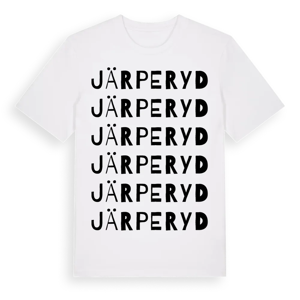 Järperyd ordlek t-shirt är inspirerad av byn Järperyd i Östergötlands län, Sverige. Tröjan är designad för dig som har en speciell koppling till platsen – oavsett om du bor här, har rötterna här eller bara älskar Järperyd.