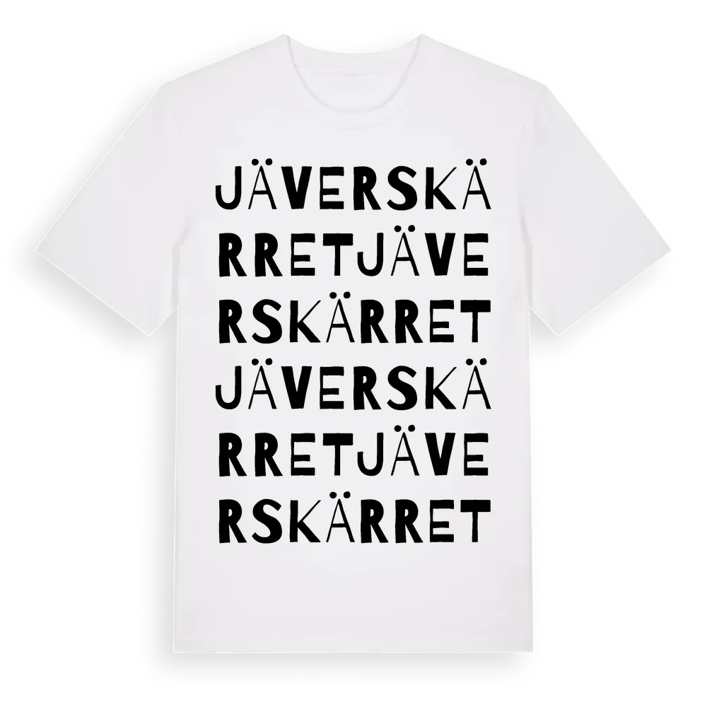 En ordlek byggd på Jäverskärrets namn. Subtilt och klurig – ett motiv som bara de som verkligen känner platsen fullt ut förstår. Premium bomull, unisex – från Jäverskärret i Östergötlands län.
