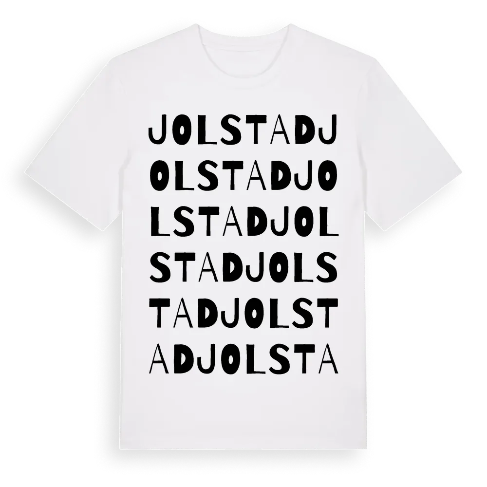 Jolstad ordlek t-shirt är inspirerad av byn Jolstad i Östergötlands län, Sverige. Tröjan är designad för dig som har en speciell koppling till platsen – oavsett om du bor här, har rötterna här eller bara älskar Jolstad.